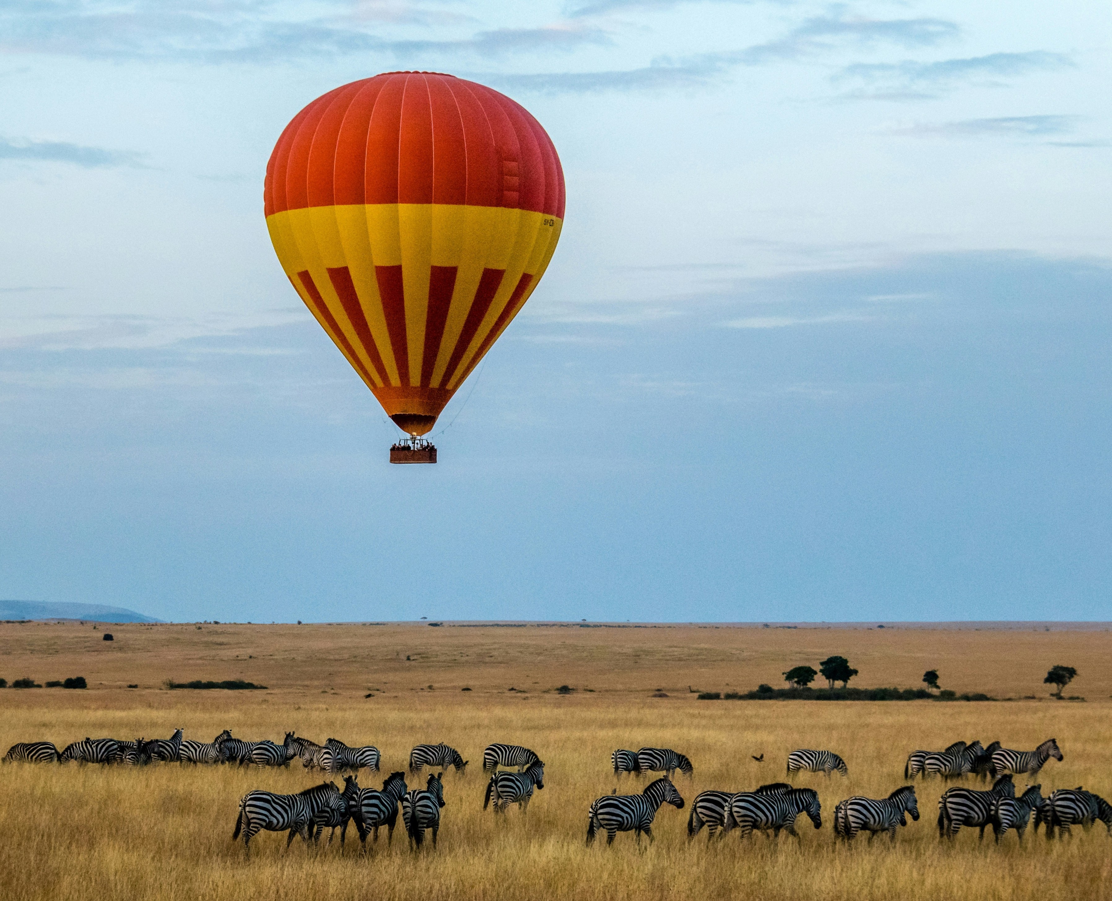 🚙 Hot Air Balloon Safari – A breathtaking aerial view of wildlife in Maasai Mara.